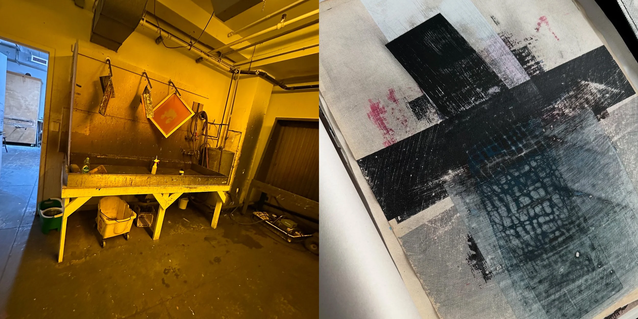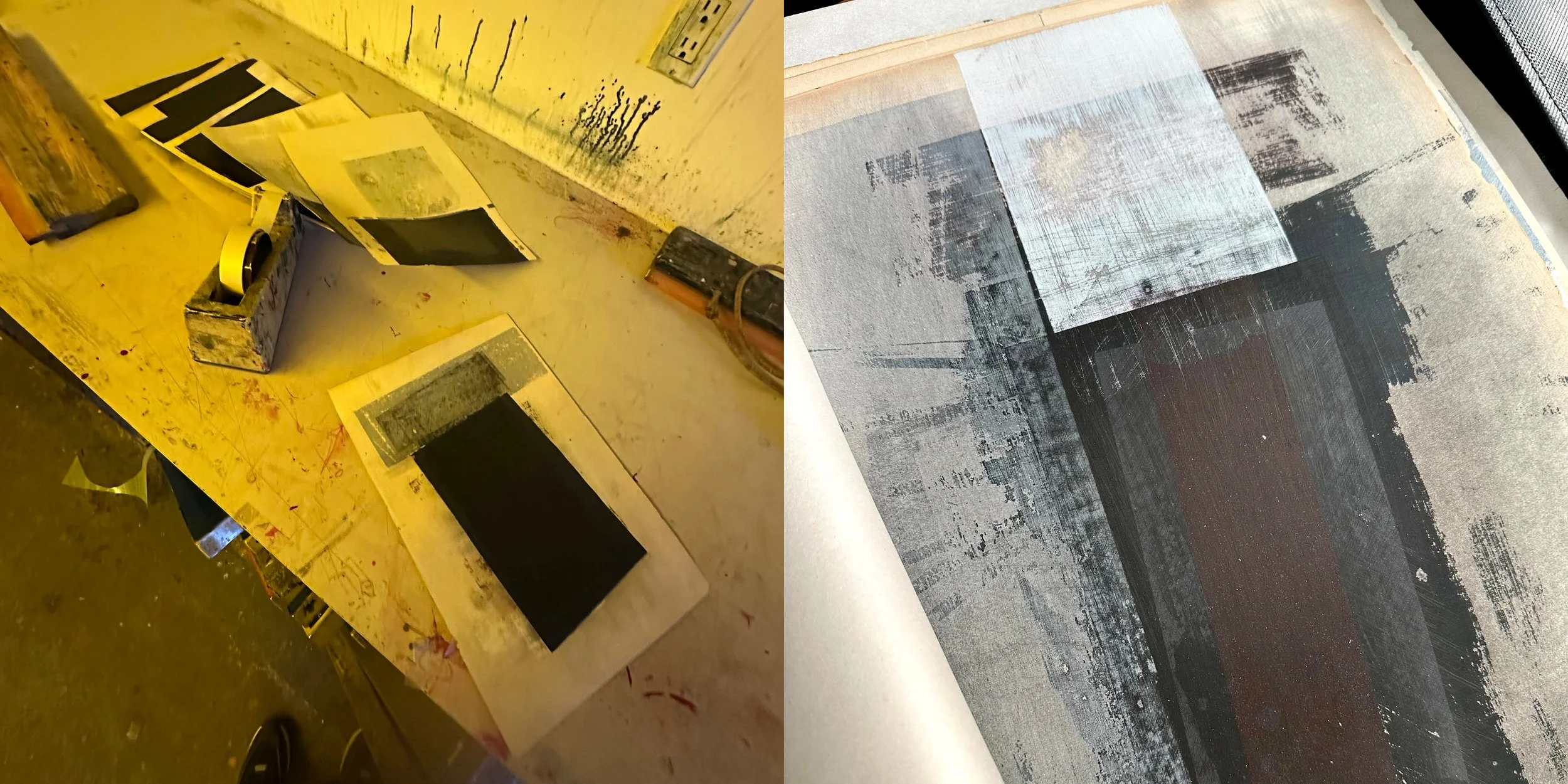 This ongoing series experiments with silkscreen, chromolithographs, and sanding techniques layered over vintage texts and images. Some elements stay submerged in texture, while others begin to surface. The balance between visibility and obscurity is still evolving.