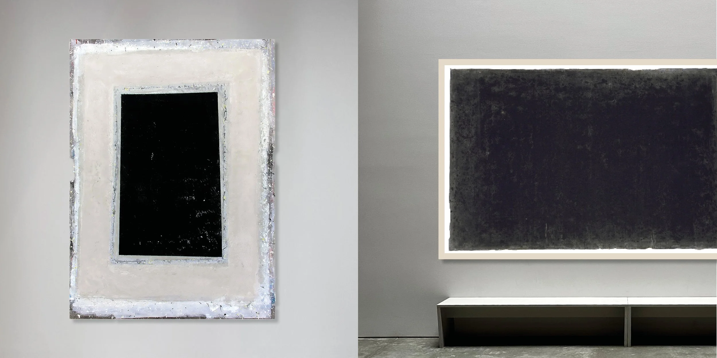Large-format works on canvas and paper, shaped by a minimalist aesthetic. Through blocking and reduction, the work aims to reveal the essence of the subject by removing.